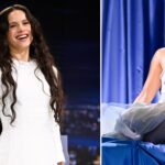 Білі джинси гарно комбінуються зі штучною хутряною курткою: вона додає тепла й робить образ більш зимовим. Коричневі балетки ніжно контрастують зі світлим денімом і гармонізують поєднання. Завершує образ сумка City Bag від Balenciaga — проста деталь, яка додає охайності та робить комплект зібраним.