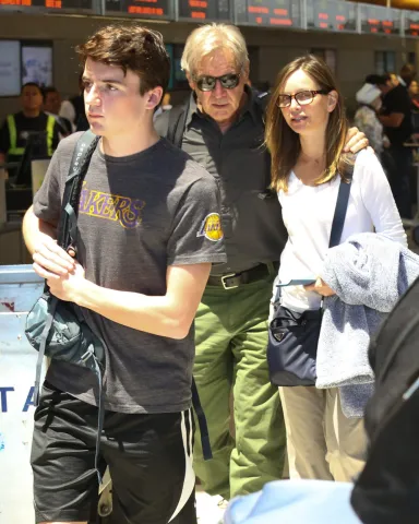Ліам Флокхарт, Гаррісон Форд та Каліста Флокхарт Гаррісон Форд та Каліста Флокхарт у міжнародному аеропорту LAX, Лос-Анджелес, США – 28 червня 2017 року
