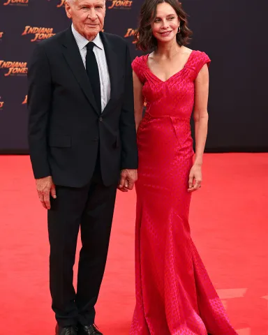 Гаррісон Форд (ліворуч) та його дружина, американська акторка Каліста Флокхарт, прибувають на німецьку прем'єру фільму «Індіана Джонс і циферблат долі» в кінотеатрі Zoo Palast у Берліні, Німеччина, 22 червня 2023 року. Фільм буде показаний у німецьких кінотеатрах з 29 червня 2023 року. Прем'єра фільму «Індіана Джонс і циферблат долі» в Берліні, Німеччина – 22 червня 2023 року