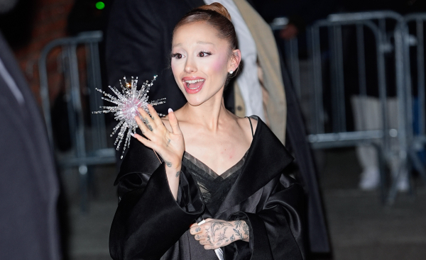 Для цієї події вона обрала чорну сукню-комбінацію на бретельках із V-подібним вирізом. Вона мала прозорий ліф з деталями на запах та листяну смарагдово-зелену вишивку, що обвивалася навколо спідниці. Коли вона увійшла до залу, Гранде також демонструвала шовковисте чорне пальто з відкритими плечима та широкими лацканами, яке не надто відрізнялося від плаща Злої Відьми.